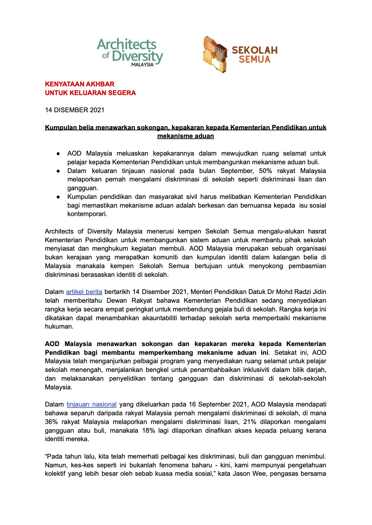 A1M mula dilaksanakan di Kuala Lumpur KL pada tahun 2010. Permohonan Kemasukan Sekolah Berasrama Penuh SBP 2022 Tingkatan 1 Online.
